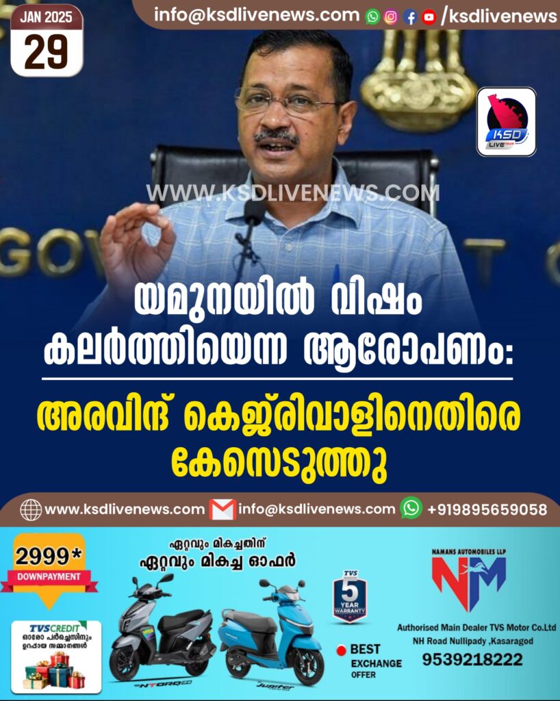 യമുനയിൽ വിഷം കലർത്തിയെന്ന ആരോപണം: അരവിന്ദ് കെജ‍്‍രിവാളിനെതിരെ കേസെടുത്തു
