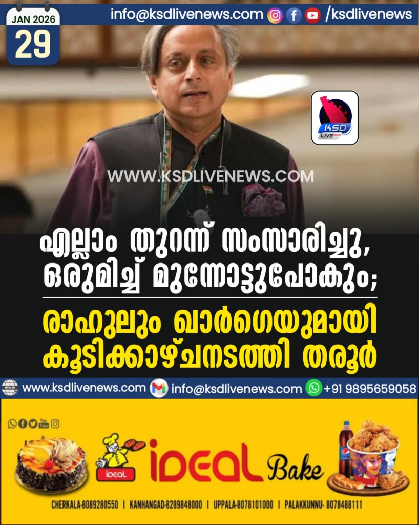 എല്ലാം തുറന്ന് സംസാരിച്ചു, ഒരുമിച്ച് മുന്നോട്ടുപോകും’; രാഹുലും ഖാർഗെയുമായി കൂടിക്കാഴ്ചനടത്തി തരൂർ