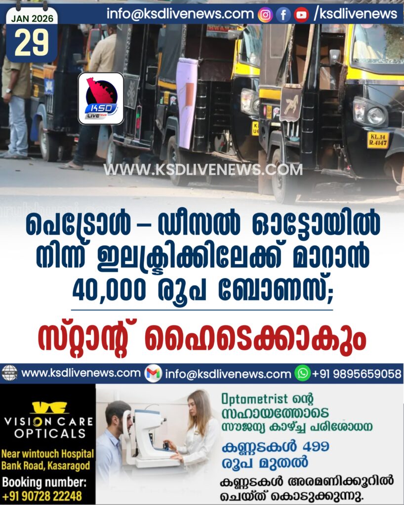 പെട്രോൾ-ഡീസൽ ഓട്ടോയിൽനിന്ന് ഇലക്ട്രിക്കിലേക്ക് മാറാൻ 40,000 രൂപ ബോണസ്; സ്റ്റാന്റ് ഹൈടെക്കാകും