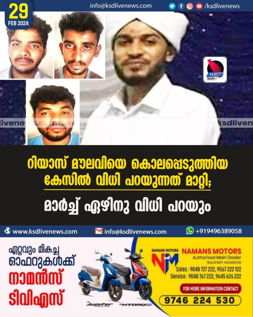 റിയാസ് മൗലവിയെ കൊലപ്പെടുത്തിയ കേസിൽ വിധി പറയുന്നത് മാറ്റി; മാർച്ച് ഏഴിനു വിധി പറയും