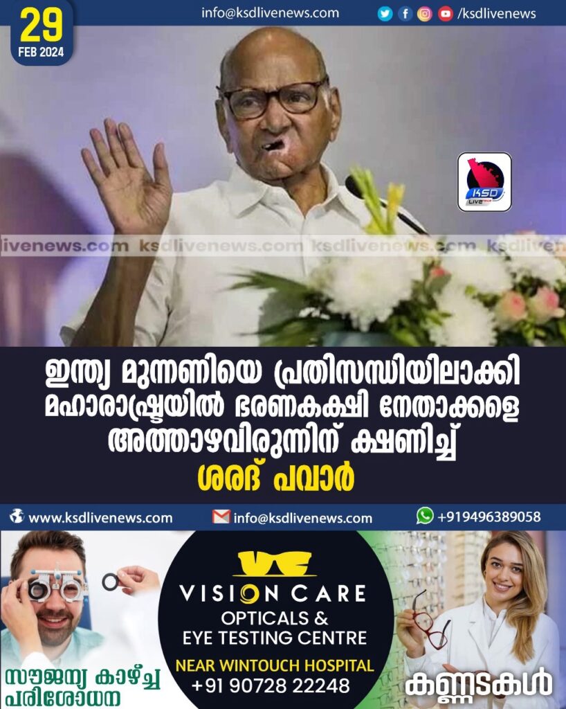 ഇന്ത്യ മുന്നണിയെ പ്രതിസന്ധിയിലാക്കി മഹാരാഷ്ട്രയില് ഭരണകക്ഷി നേതാക്കളെ അത്താഴവിരുന്നിന് ക്ഷണിച്ച് ശരദ് പവാര്