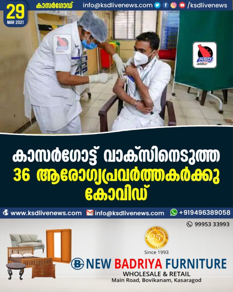 കാസർഗോട്ട് വാക്സിനെടുത്ത 36 ആരോഗ്യപ്രവർത്തകർക്കു കോവിഡ്