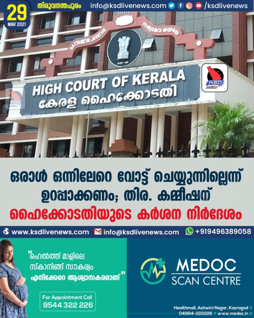 ഒരാള് ഒന്നിലേറെ വോട്ട് ചെയ്യുന്നില്ലെന്ന് ഉറപ്പാക്കണം; തിര. കമ്മീഷന് ഹൈക്കോടതിയുടെ കര്ശന നിര്ദേശം