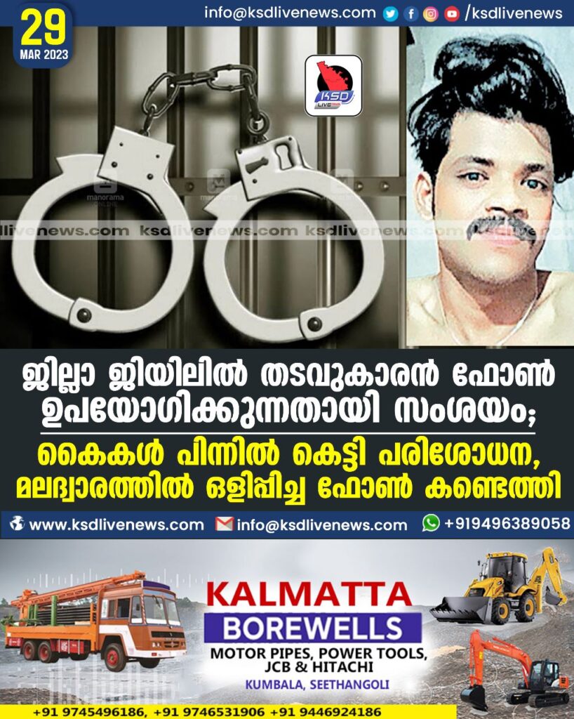 തടവുകാരൻ ഫോൺ ഉപയോഗിക്കുന്നതായി സംശയം; കൈകൾ പിന്നിൽ കെട്ടി പരിശോധന, മലദ്വാരത്തിൽ ഒളിപ്പിച്ച ഫോൺ കണ്ടെത്തി
