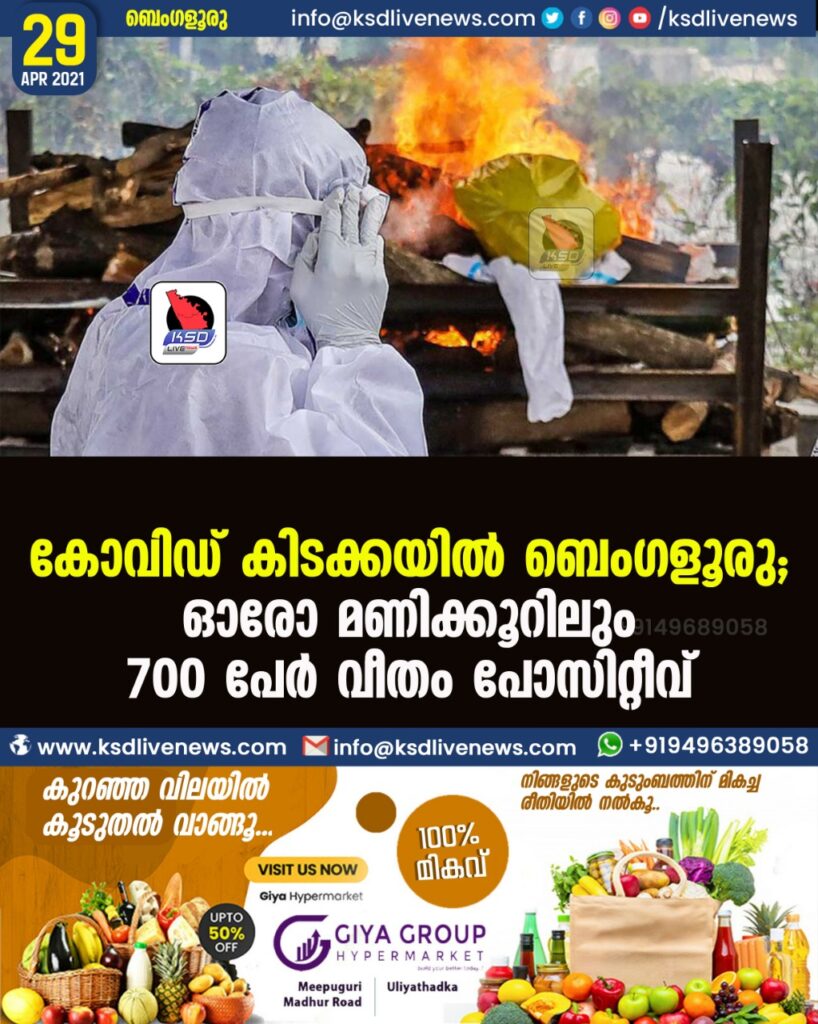 കോവിഡ് കിടക്കയിൽ ബെംഗളൂരു; ഓരോ മണിക്കൂറിലും 700 പേർ വീതം പോസിറ്റീവ്