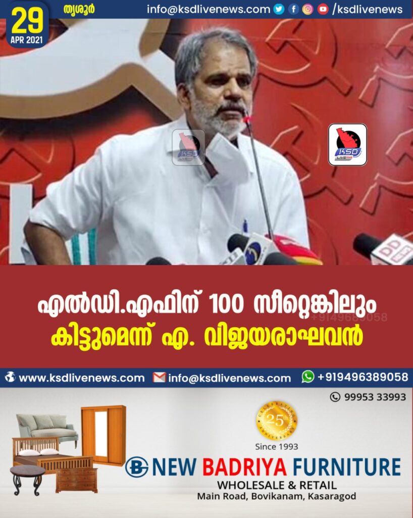 എല്ഡി.എഫിന് 100 സീറ്റെങ്കിലും കിട്ടുമെന്ന് എ. വിജയരാഘവന്