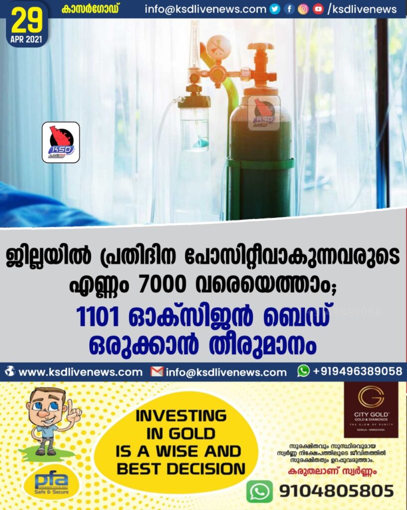 പോസിറ്റീവാകുന്നവരുടെ എണ്ണം 7000 വരെയെത്താം, 1101 ഓക്സിജൻ ബെഡ് ഒരുക്കാൻ തീരുമാനം