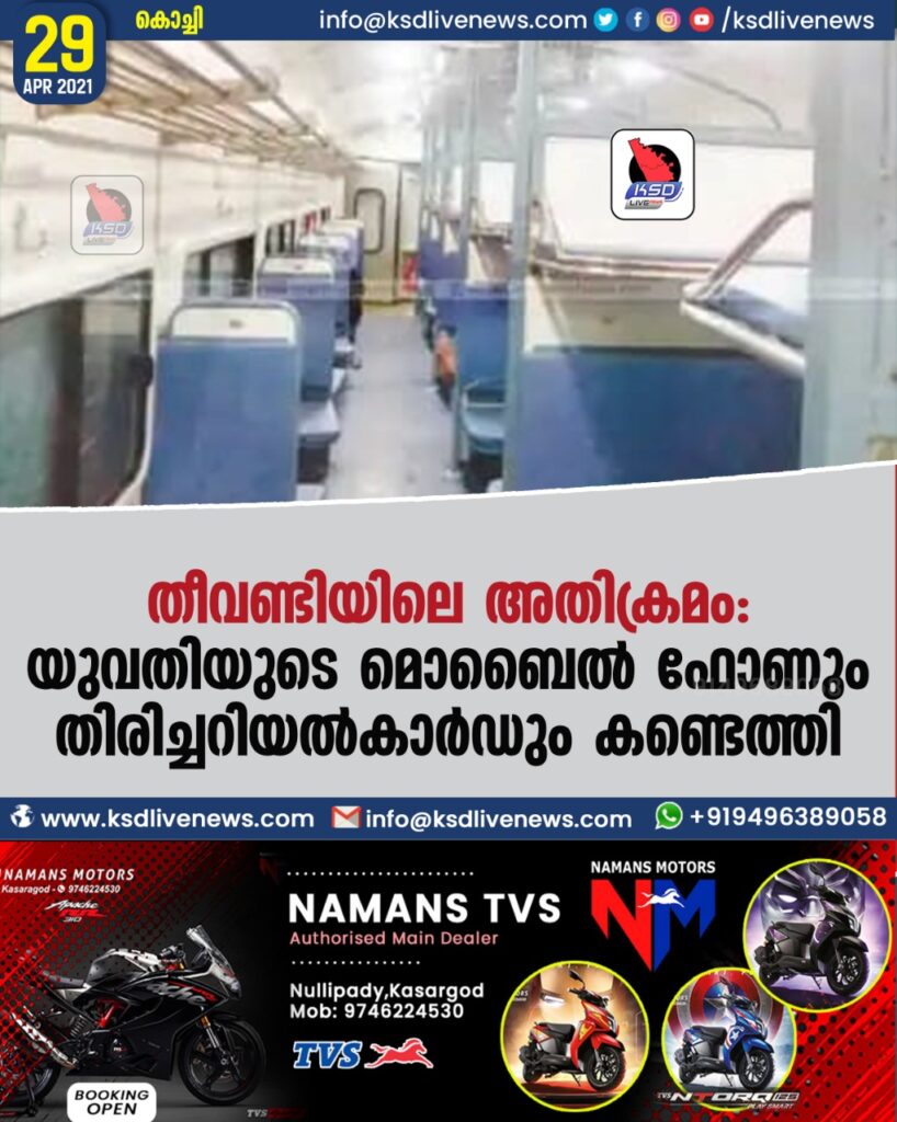 തീവണ്ടിയിലെ അതിക്രമം: യുവതിയുടെ മൊബൈല് ഫോണും തിരിച്ചറിയല് കാര്ഡും കണ്ടെത്തി