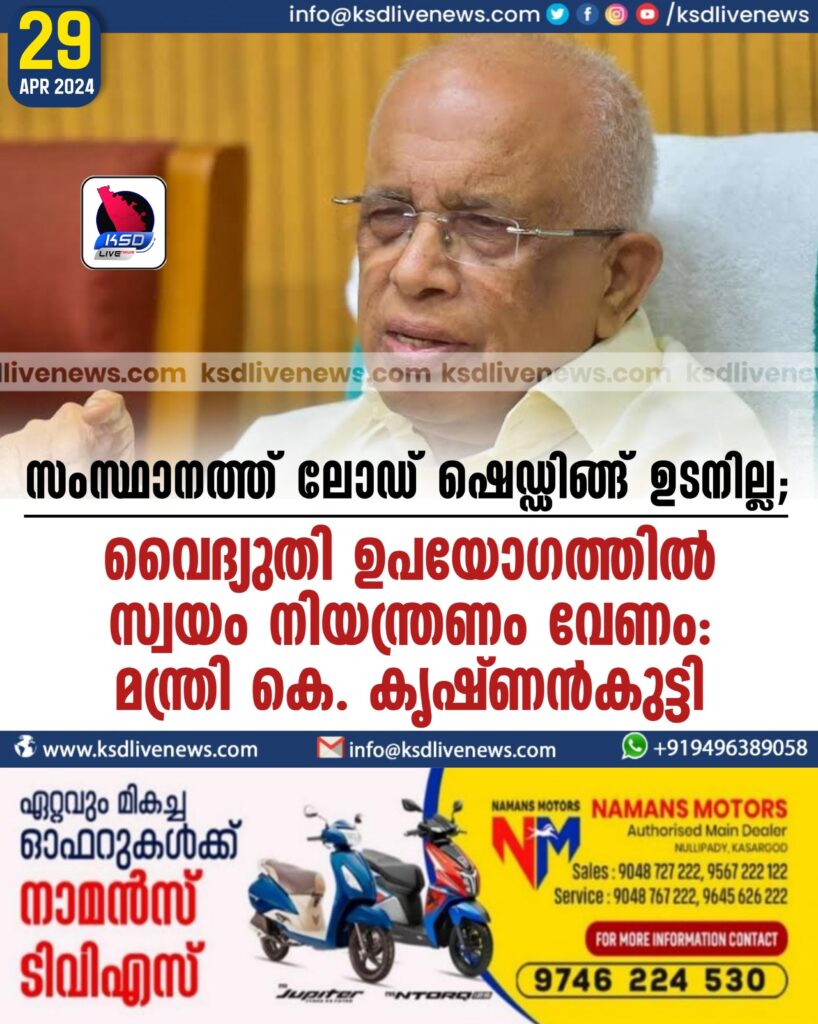 സംസ്ഥാനത്ത് ലോഡ് ഷെഡ്ഡിങ്ങ് ഉടനില്ല; വൈദ്യുതി ഉപയോഗത്തിൽ സ്വയം നിയന്ത്രണം വേണം: മന്ത്രി കെ.കൃഷ്ണന്കുട്ടി