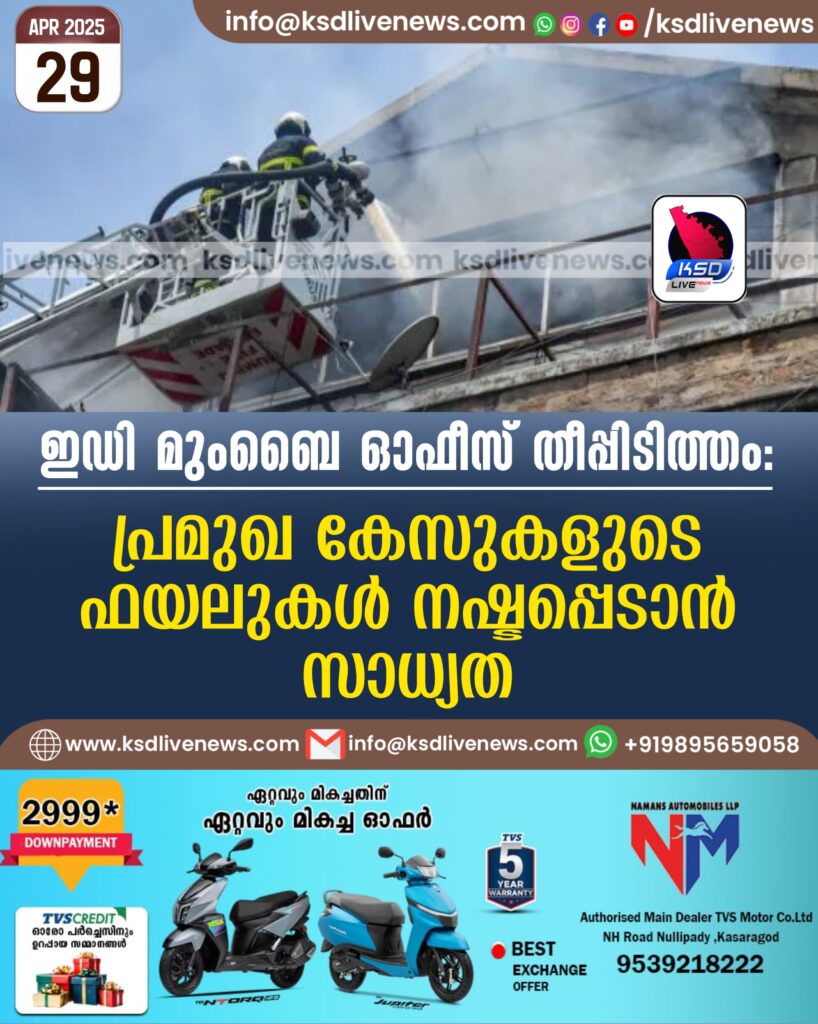 ഇഡി മുംബൈ ഓഫീസ് തീപ്പിടിത്തം, പ്രമുഖ കേസുകളുടെ ഫയലുകൾ നഷ്ടപ്പെടാൻ സാധ്യത