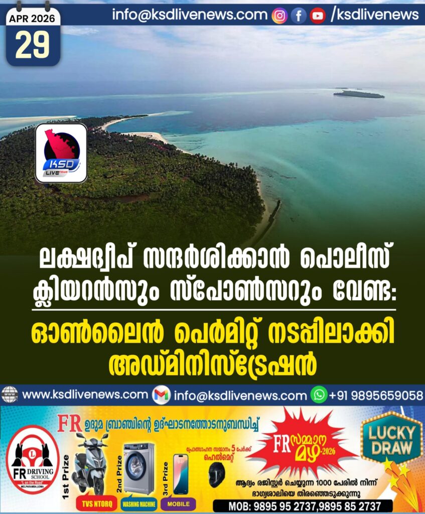 ലക്ഷദ്വീപ് സന്ദർശിക്കാൻ പൊലീസ് ക്ലിയറൻസും സ്പോൺസറും വേണ്ട; ഓൺലൈൻ പെർമിറ്റ് നടപ്പിലാക്കി അഡ്മിനിസ്ട്രേഷൻ