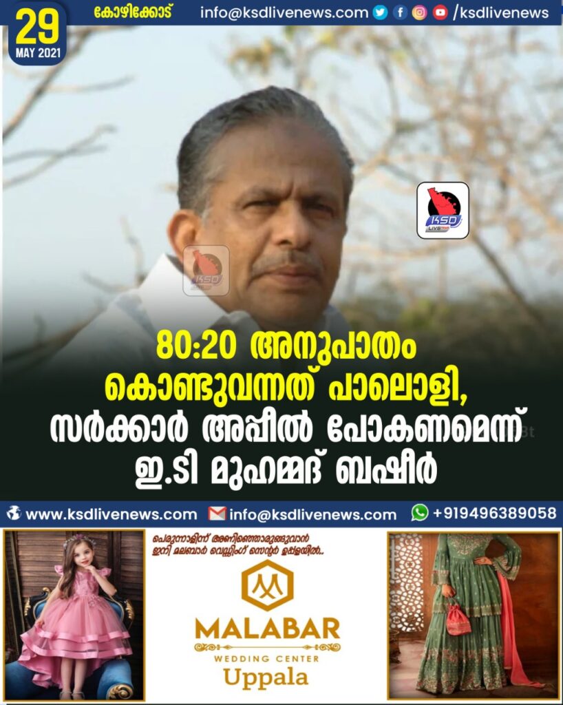 80:20 അനുപാതം കൊണ്ടുവന്നത് പാലൊളി, സര്‍ക്കാര്‍ അപ്പീല്‍ പോകണമെന്ന് ഇ.ടി മുഹമ്മദ് ബഷീര്‍