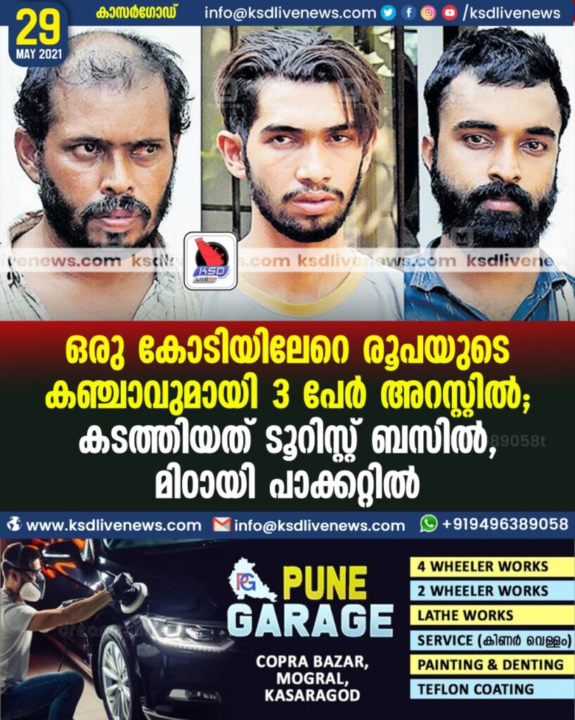 ∙ കോവിഡിന്റെ മറവിൽ അതിഥിത്തൊഴിലാളികളെ കൊണ്ടുപോകാനെന്ന വ്യാജേന ടൂറിസ്റ്റ് ബസിൽ കടത്തുകയായിരുന്ന ഒരു കോടിയിലേറെ രൂപയുടെ 240 കിലോ കഞ്ചാവുമായി 3 പേർ അറസ്റ്റിലായി. ബസും കസ്റ്റഡിയിലെടുത്തു. ചെർക്കള ബേർക്ക റോഡിൽ സിഎം ക്വാർട്ടേഴ്സിൽ മുഹമ്മദ് ഹനീഫ (41), ചെർക്കള ബദർ ജുമാസ്ജിദിനടുത്തെ മേനേങ്കോട് ഹൗസിൽ എം.എ.മുഹമ്മദ് റിയാസ് (23), പെരിയാടുക്കം ചെരുമ്പ ക്വാർട്ടേഴ്സിൽ കെ.മൊയ്തിൻകുഞ്ഞി (28) എന്നിവരെയാണു ഡിവൈഎസ്പി പി.പി.സദാനന്ദന്റെ പൊലീസ് സംഘം അറസ്റ്റ് ചെയ്തത്. ഡ്രൈവറും ബസ് ഉടമയുടെ മകനും അറസ്റ്റിലായവരിൽ ഉൾപ്പെടുന്നു. പൊലീസിനു ലഭിച്ച വിവരത്തെ തുടർന്നു വിദ്യാനഗർ പാറക്കട്ടയിൽ നിന്ന് ഇന്നലെ രാവിലെയാണു കഞ്ചാവുമായി ബസ് പിടികൂടിയത്. ചരക്കു സാധനങ്ങൾ വയ്ക്കുന്ന സ്ഥലത്താണു പ്ലാസ്റ്റിക് കവറുകളിലായി നിറച്ചു കഞ്ചാവ് ചാക്കുകളിലായിരുന്നു സൂക്ഷിച്ചിരുന്നത്. ആന്ധ്രപ്രദേശ്–ഒഡീഷ അതിർത്തിയിൽ നിന്നാണു പ്രതികൾ ജില്ലയിലേക്കു കഞ്ചാവ് എത്തിച്ചതെന്നു ഡിവൈഎസ്പി പി.പി.സദാനന്ദൻ പറഞ്ഞു. വീടുകളിൽ നടത്തിയ പരിശോധനയിൽ വലിയ വാളും കത്തിയും ബേസ്ബോൾ ബാറ്റും കളിത്തോക്കും കണ്ടെടുത്തു. നേരത്തെയും പ്രതികൾ  ക‍ഞ്ചാവ് കടത്തിയെന്നു പൊലീസ് സംശയിക്കുന്നുണ്ടെങ്കിലും പിടിക്കപ്പെടുന്നത് ആദ്യമായിട്ടാണ്. മൊയ്തീൻ കുഞ്ഞി ആണ് കഞ്ചാവ് കടത്തിന്റെമുഖ്യസൂത്രാധാരനെന്നു പൊലീസ് പറഞ്ഞു.വിദ്യാനഗർ ഇൻസ്‌പെക്ടർ ശ്രീജിത്ത് കൊടേരി, എസ്ഐ.മാരായ കെ.നാരായണൻ നായർ, സി.കെ.ബാലകൃഷ്ണൻ, എഎസ്ഐമാരായ ലക്ഷ്മി നാരായണ, അബൂബക്കർ കല്ലായി, എസ്‍സിപിഒ ഡി.ശിവകുമാർ, സിപിഒമാരായ ഓസ്റ്റിൻ തമ്പി, രാജേഷ്, ജിനേഷ് കുട്ടമത്ത്, നികേഷ്, സജീഷ്, ശ്രീജിത്ത് കുമാർ, ഡ്രൈവർ ഹൈദർ, സുമേഷ് ബാബു, ഹരീഷ, ടി.വി.വിജേഷ് എന്നിവരടങ്ങുന്ന സംഘമാണ് പരിശോധന നടത്തിയത്. മിഠായി പാക്കറ്റിൽ കഞ്ചാവ് ബസിൽ  കഞ്ചാവ് കടത്തിയത് മിഠായി പാക്കറ്റിന്റെ രൂപത്തിലാക്കി ചാക്കുകളിൽ നിറച്ച്. ഒറ്റനോട്ടത്തിൽ കാണുമ്പോൾ മിഠായികളാണെന്നു തോന്നിക്കും. വിപണിയിലുള്ള ഒരു പ്രമുഖ ബ്രാൻഡ് മിഠായിയുടെ കളറിലുള്ള പാക്കറ്റുകളിലാണു 2 കിലോ വീതമുള്ള കഞ്ചാവ് നിറച്ചത്. 2 കിലോ തൂക്കം വരുന്ന കഞ്ചാവ് ചില്ലറ വിൽപ്പനക്കാർക്കു നൽകുന്നത് 40,000 മുതൽ 50,000 രൂപ വരെയുള്ള വിലയ്ക്കാണ്. കാസർകോട്, കാ‍ഞ്ഞങ്ങാട്, ഉപ്പള, കണ്ണൂർ, പയ്യന്നൂർ, തലശ്ശേരി എന്നിവിടങ്ങളിലെ ചെറുകിട കച്ചവടക്കാർക്കാണു നൽകാനാണു ജില്ലയിലേക്ക് കഞ്ചാവ് എത്തിച്ചതെന്നു പ്രതികൾ സൂചിപ്പിച്ചതായി പൊലീസ് പറഞ്ഞു. കഞ്ചാവ് സംഘം ഇവർക്കു കൈമാറുമ്പോൾ തന്നെ 2 കിലോയുടെ പാക്കറ്റിലാക്കാൻ ആവശ്യപ്പെടും. ഇതു ചെറുകിട കച്ചവടർക്കാർക്ക് എളുപ്പത്തിൽ നൽകാനാണു. ആന്ധ്രപ്രദേശിലേക്കുള്ള യാത്രയ്ക്കിടെ പൊലീസ് പരിശോധിച്ചാൽ അതിഥിത