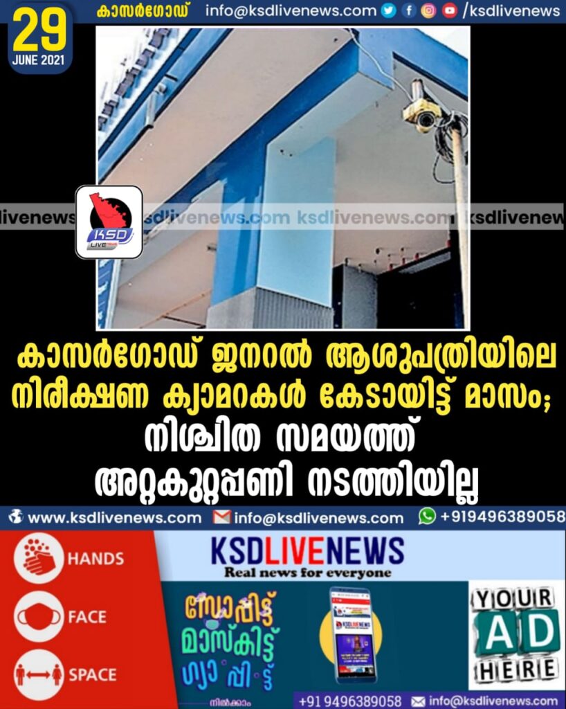 കാസർഗോഡ് ജനറൽ ആശുപത്രിയിലെ നിരീക്ഷണ ക്യാമറകൾ കേടായിട്ട് 2 മാസം; നിശ്ചിത സമയത്ത് അറ്റകുറ്റപ്പണി നടത്തിയില്ല