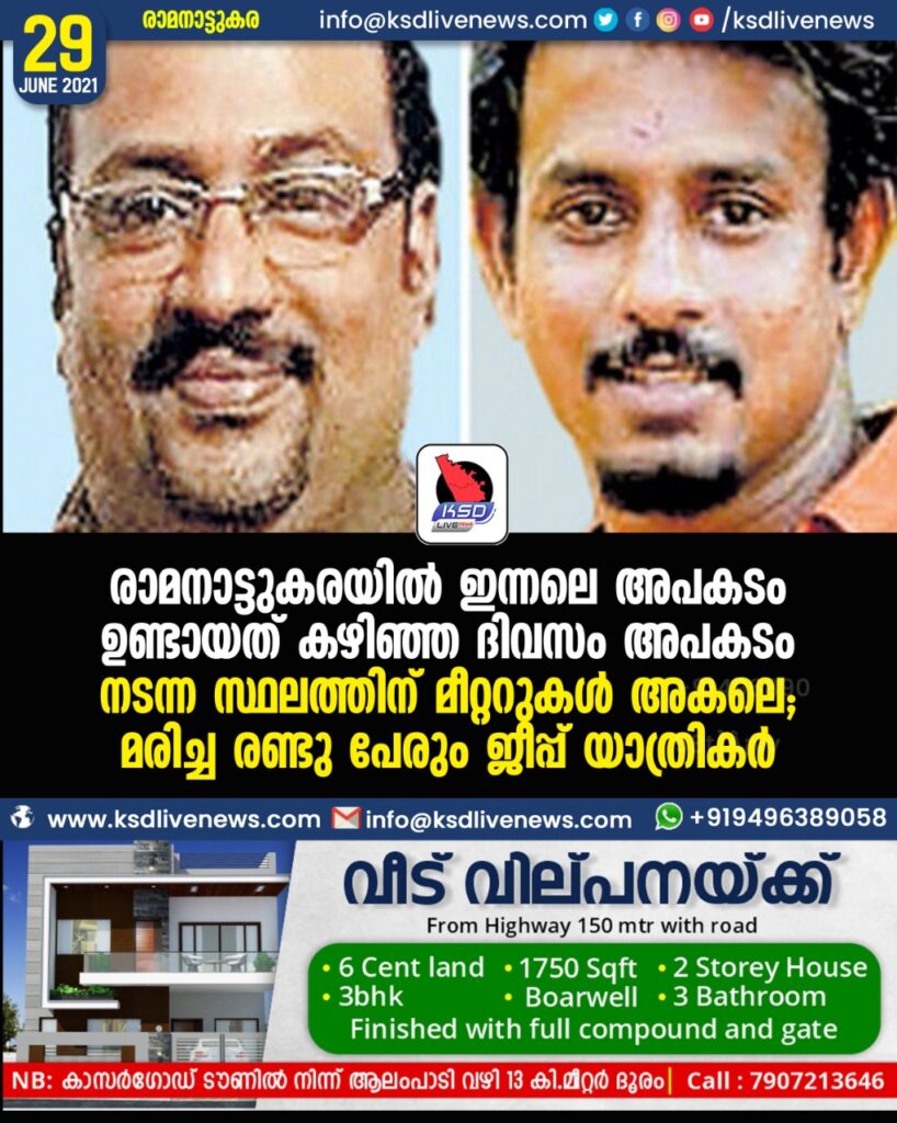 രാമനാട്ടുകരയില് ഇന്നലെ അപകടം ഉണ്ടായത് കഴിഞ്ഞ ദിവസം അപകടം നടന്ന സ്ഥലത്തിന് മീറ്ററുകൾ അകലെ; മരിച്ച രണ്ടു പേരും ജീപ്പ് യാത്രികര്