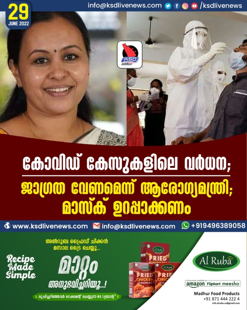 കൊവിഡ് കേസുകളിലെ വര്‍ധന; ജാഗ്രത വേണമെന്ന് ആരോഗ്യമന്ത്രി, മാസ്‍ക് ഉറപ്പാക്കണം