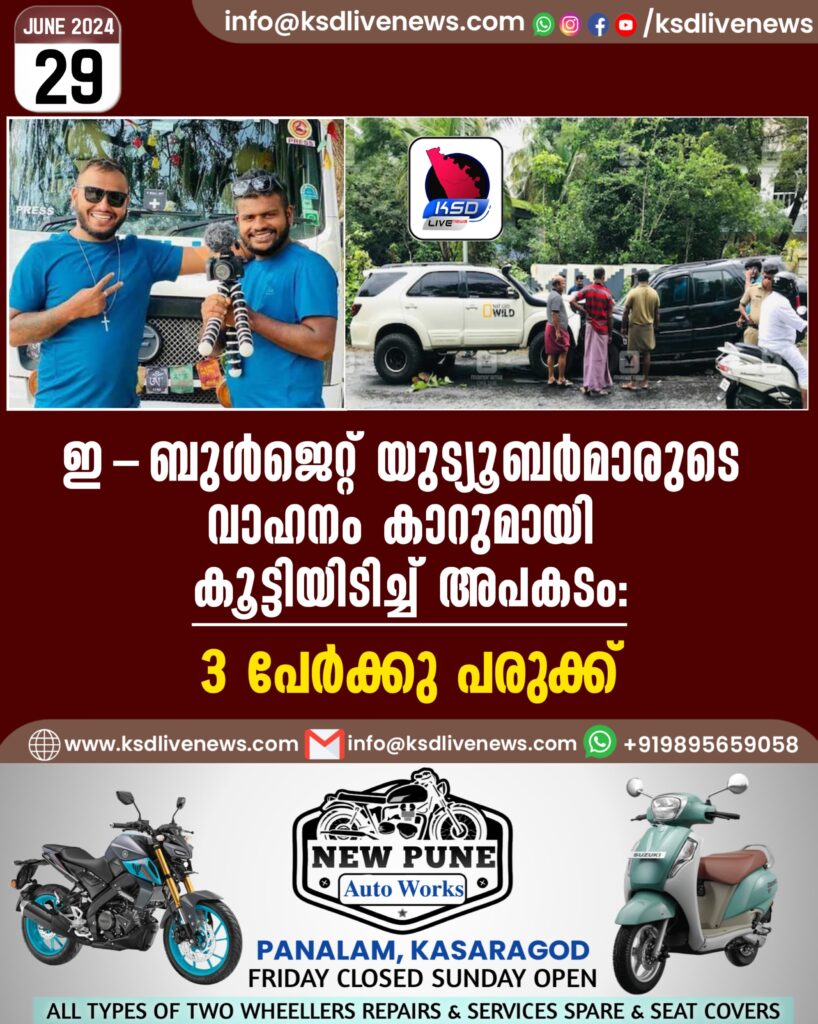ഇ-ബുൾജെറ്റ് യുട്യൂബർമാരുടെ വാഹനം കാറുമായി കൂട്ടിയിടിച്ച് അപകടം; 3 പേർക്കു പരുക്ക്