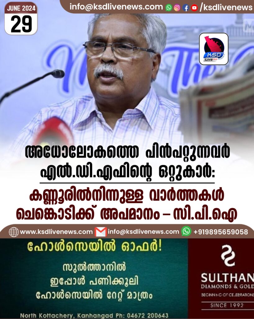 അധോലോകത്തെ പിൻപറ്റുന്നവർ എൽഡിഎഫിന്റെ ഒറ്റുകാർ, കണ്ണൂരിൽനിന്നുള്ള വാർത്തകൾ ചെങ്കൊടിക്ക് അപമാനം- സിപിഐ