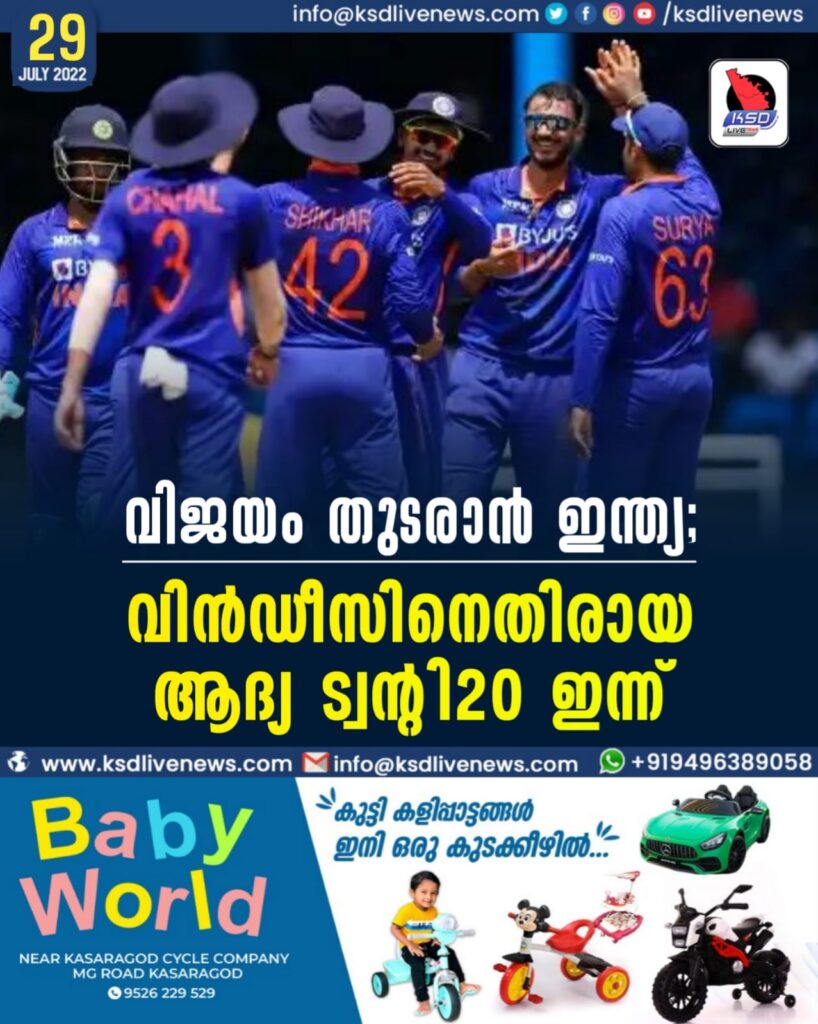 വിജയം തുടരാന്‍ ഇന്ത്യ; വിന്‍ഡീസിനെതിരായ ആദ്യ ട്വന്റി20 ഇന്ന്