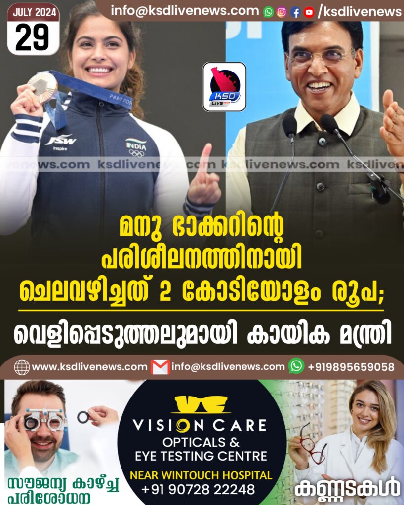 മനു ഭാക്കറിന്റെ പരിശീലനത്തിനായി ചെലവഴിച്ചത് 2 കോടിയോളം രൂപ; വെളിപ്പെടുത്തലുമായി കായിക മന്ത്രി