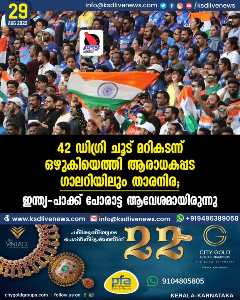 42 ഡിഗ്രി ചൂട് മറികടന്ന് ഒഴുകിയെത്തി ആരാധകപ്പട, ഗാലറിയിലും താരനിര; ഇന്ത്യ–പാക്ക് പോരാട്ട ആവേശമായിരുന്നു