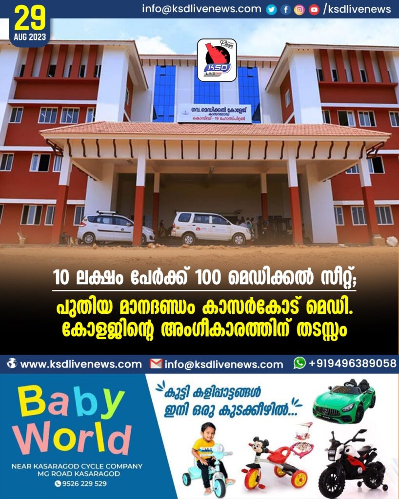 ഈ അനുപാതം കേരളം നേരത്തേ തന്നെ മറികടന്നതിനാൽ കാസർകോട് മെഡിക്കൽ കോളജിന് അംഗീകാരം ലഭിക്കുന്നത് പ്രയാസകരമാകും. മൂന്നര കോടി ജനസംഖ്യയുള്ള കേരളത്തിൽ 3500 സീറ്റിനാണ് പുതിയ മാനദണ്ഡം അനുസരിച്ച് അർഹത. കേരളത്തിൽ 4500 മെഡിക്കൽ സീറ്റുകൾ ഉള്ളതിനാൽ ഇനി പുതിയ മെഡിക്കൽ കോളജിന് പുതിയ മാനദണ്ഡം അനുസരിച്ച് അംഗീകാരം ലഭിക്കാനിടയില്ല. നിലവിലെ മെഡിക്കൽ കോളജുകൾക്ക് തന്നെ അംഗീകാരം നഷ്ടപ്പെടുമോയെന്ന ആശങ്ക നിലനിൽക്കുകയാണ്. കാസർകോട് മെഡിക്കൽ കോളജിൽ 100 സീറ്റിനുള്ള നടപടികളാണ് ഒരുങ്ങുന്നത്.