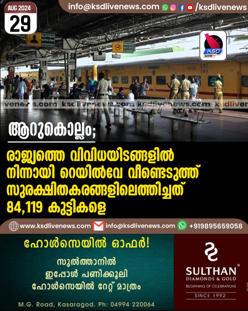 ആറുകൊല്ലം; രാജ്യത്തെ വിവിധയിടങ്ങളിൽ നിന്നായി റെയിൽവേ വീണ്ടെടുത്ത് സുരക്ഷിതകരങ്ങളിലെത്തിച്ചത് 84,119 കുട്ടികളെ-