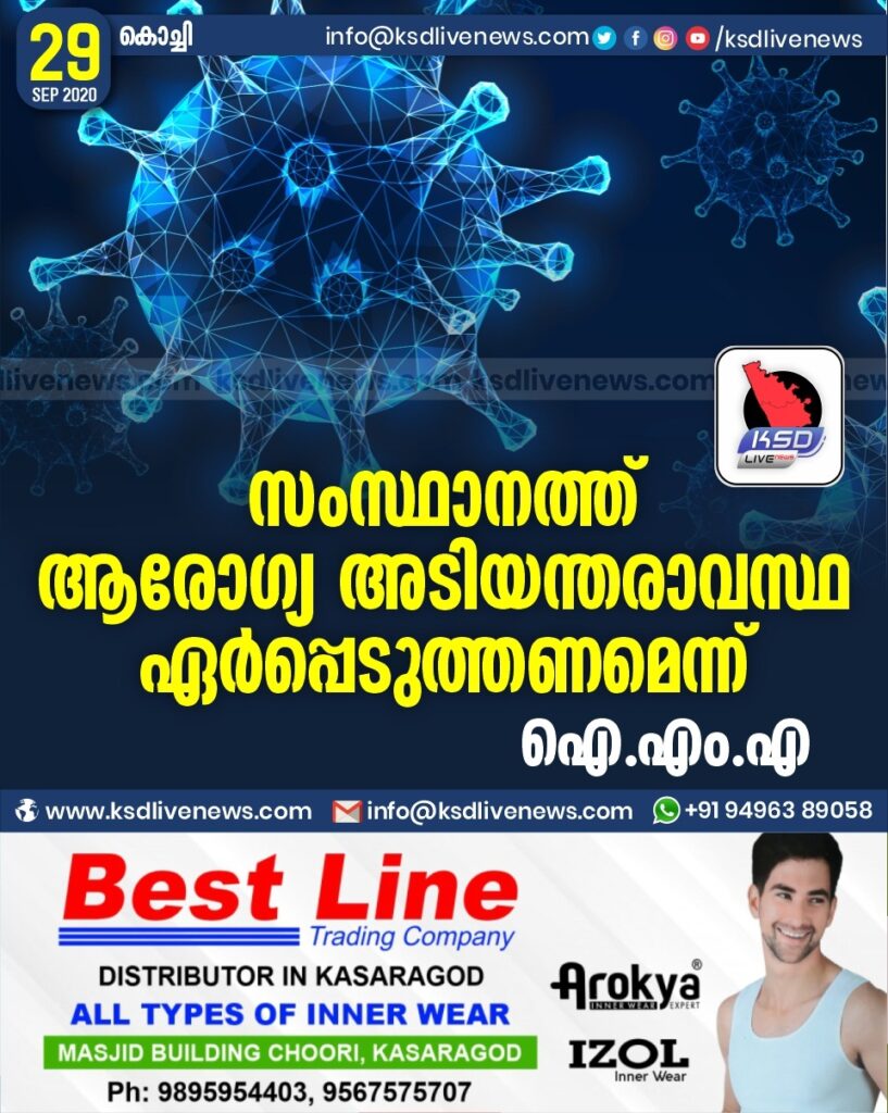 സംസ്ഥാനത്ത്‌ ആരോഗ്യ അടിയന്തരാവസ്ഥ ഏർപ്പെടുത്തണമെന്ന് ഐ.എം.എ