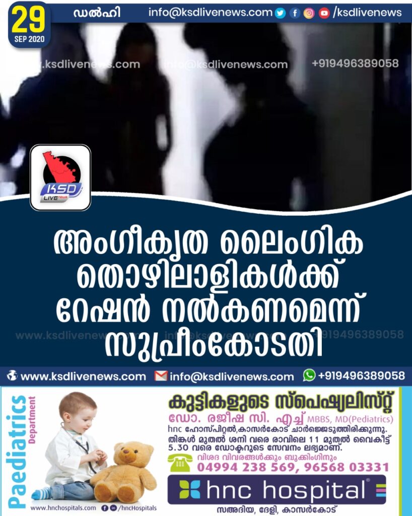 അംഗീകൃത ലൈംഗിക തൊഴിലാളികൾക്ക് റേഷൻ നൽകണമെന്ന് സുപ്രീംകോടതി