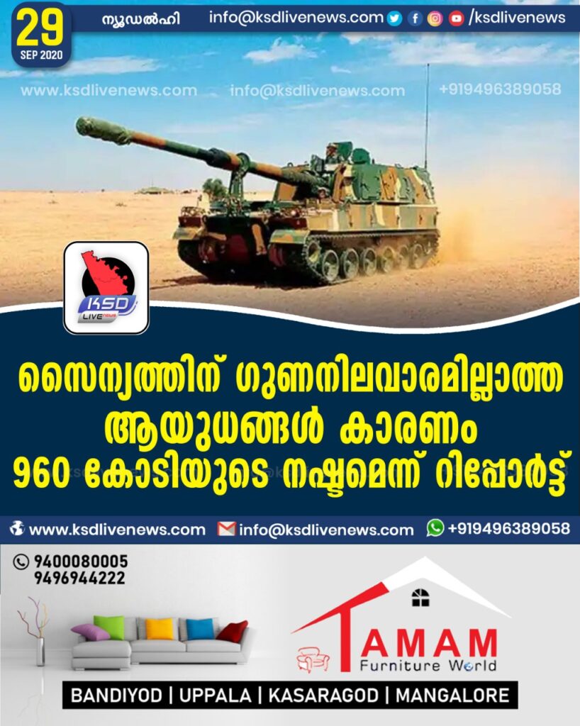 സൈന്യത്തിന് ഗുണനിലവാരമില്ലാത്ത ആയുധങ്ങൾ കാരണം 960 കോടിയുടെ നഷ്ടമെന്ന് റിപ്പോർട്ട്