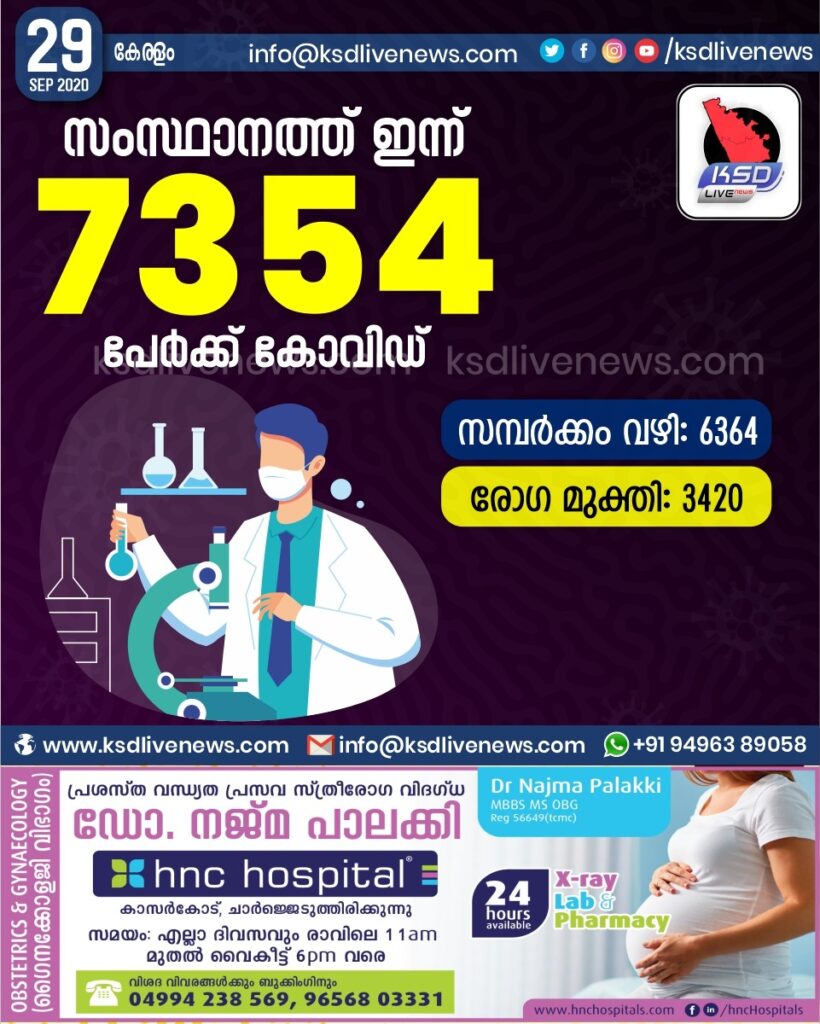 ഇന്ന് 7354 പേര്‍ക്ക് കോവിഡ്-19 സ്ഥിരീകരിച്ചു