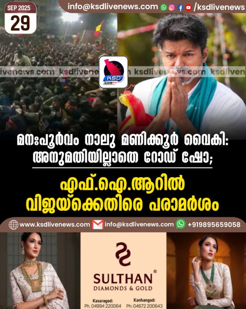 മനഃപൂർവം നാലു മണിക്കൂർ വൈകി: അനുമതിയില്ലാതെ റോഡ് ഷോ; എഫ്.ഐ.ആറിൽ വിജയ്ക്കെതിരെ പരാമർശം