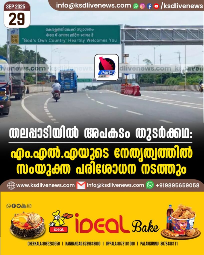 തലപ്പാടിയിൽ അപകടം തുടർക്കഥ: എം.എൽ.എയുടെ നേതൃത്വത്തിൽ സംയുക്ത പരിശോധന നടത്തും
