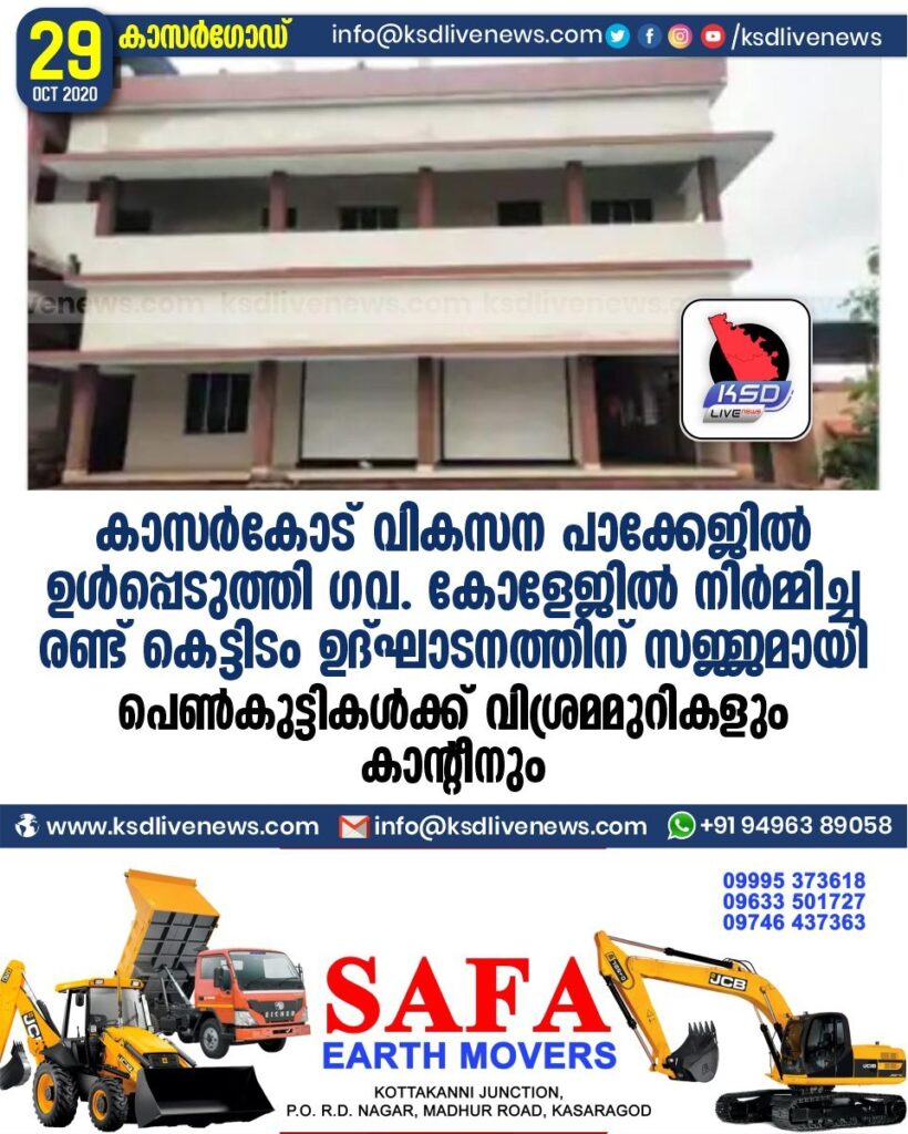 കാസർകോട് വികസന പാക്കേജിൽ ഉൾപ്പെടുത്തി ഗവ. കോളേജിൽ നിർമ്മിച്ച രണ്ട് കെട്ടിടം ഉത്ഘാടനത്തിന് സജ്ജമായി ; പെൺകുട്ടികൾക്ക് വിശ്രമമുറികളും കാന്റീനും