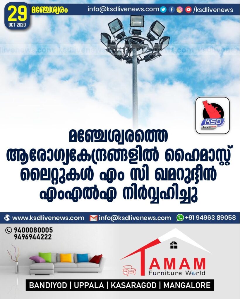 മഞ്ചേശ്വരത്തെ ആരോഗ്യകേന്ദ്രങ്ങളിൽ ഹൈമാസ്റ്റ് ലൈറ്റുകൾ എം സി ഖമറുദ്ദീൻ എംഎൽഎ നിർവ്വഹിച്ചു