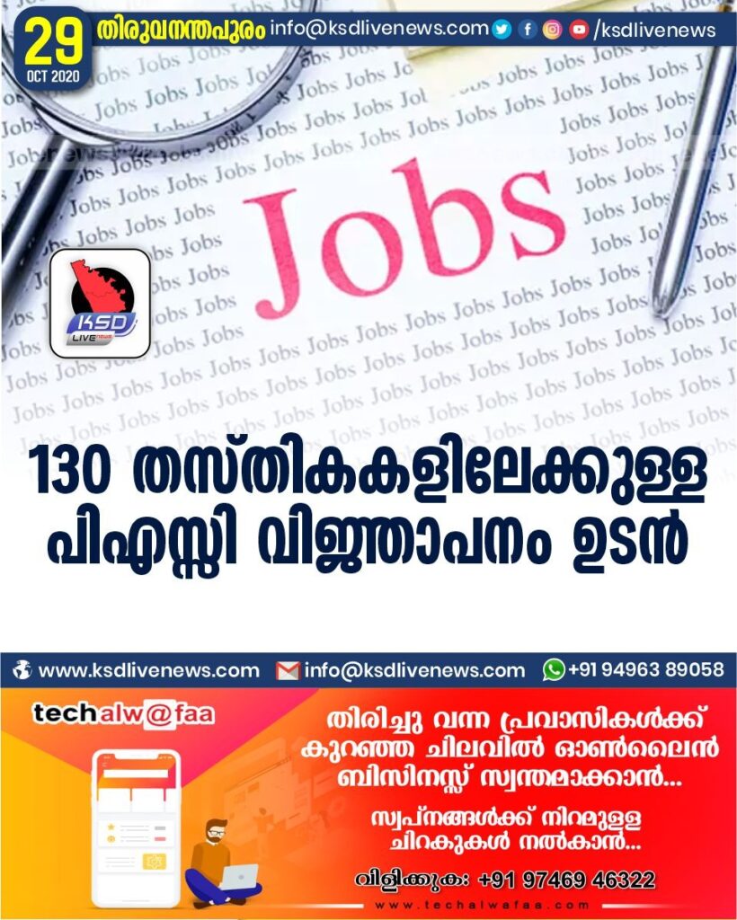 130 തസ്തികകളിലേക്കുള്ള പിഎസ്സി വിജ്ഞാപനം ഉടൻ