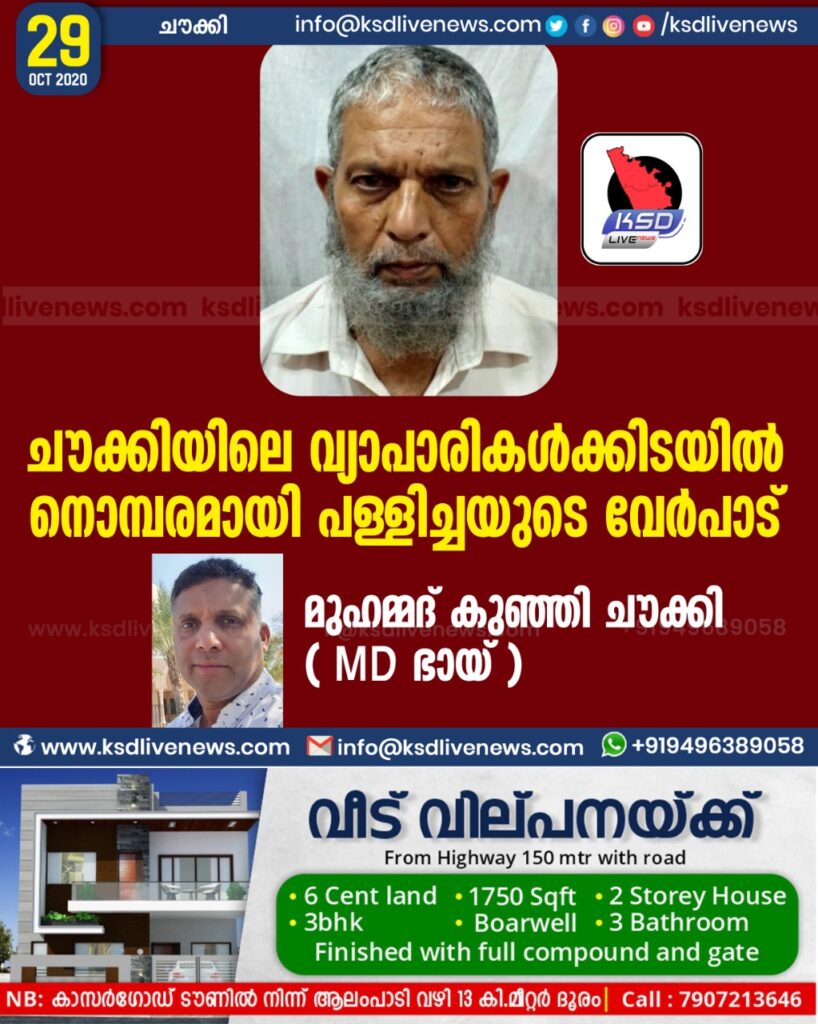 ചൗക്കിയിലെ വ്യാപാരികൾക്കിടയിൽ നൊമ്പരമായി പള്ളിച്ചയുടെ വേർപാട്