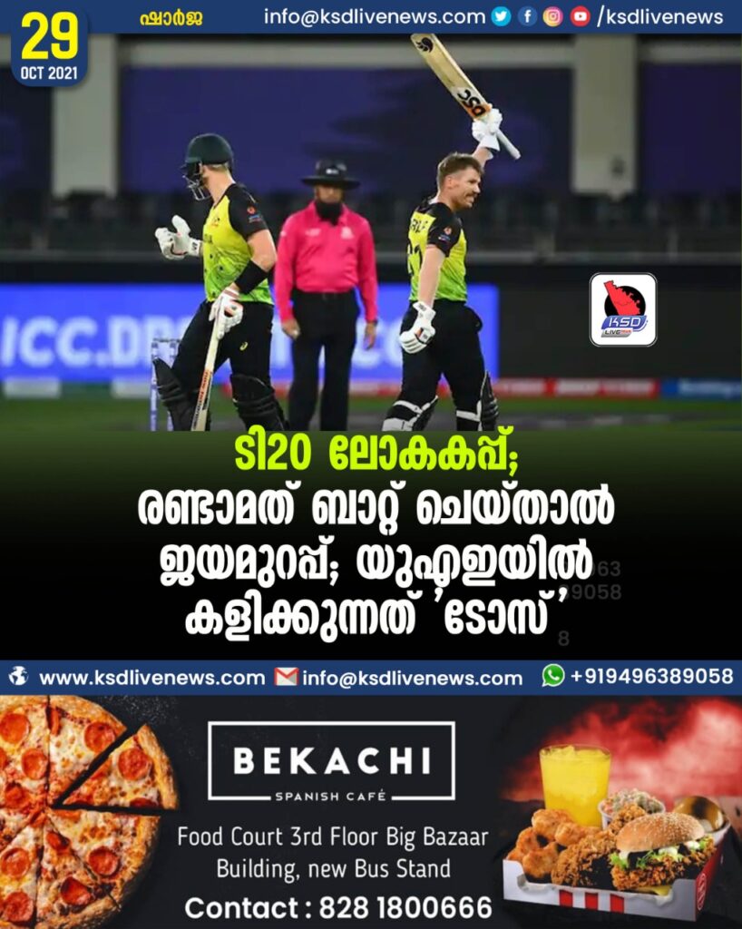 ടി20 ലോകകപ്പ്: രണ്ടാമത് ബാറ്റ് ചെയ്താല് ജയമുറപ്പ്; യുഎഇയില് കളിക്കുന്നത് ‘ടോസ്’