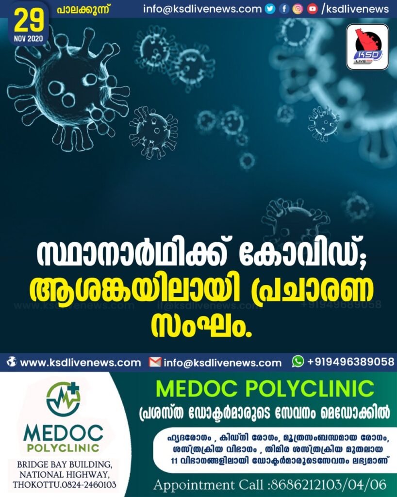 സ്ഥാനാർഥിക്ക് കോവിഡ് ; ആശങ്കയിലായി പ്രചാരണ സംഘം.