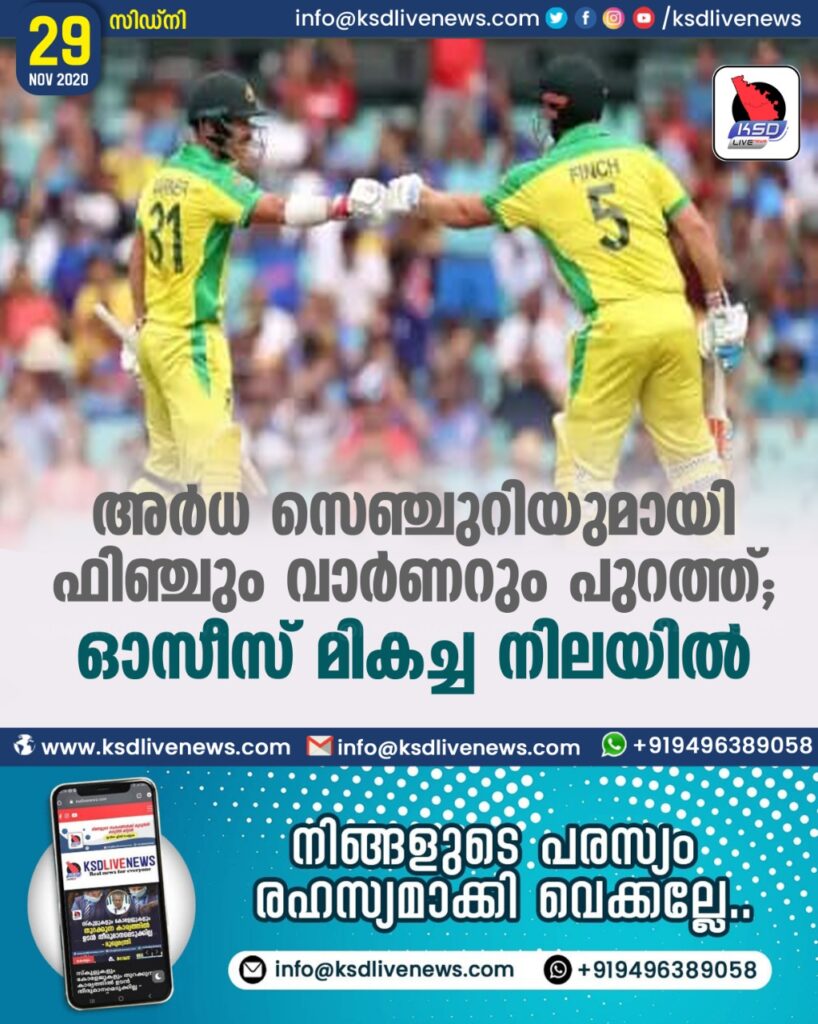 ഓപ്പണർമാരായ ഡേവിഡ് വാർണറും ക്യാപ്റ്റൻ ആരോൺ ഫിഞ്ചും നിലയുറപ്പിച്ചതോടെ ഓസീസ് സ്കോറിലേക്ക് അതിവേഗം റൺസെത്തി. ഓപ്പണിങ് വിക്കറ്റിൽ 142 റൺസാണ് ഇരുവരും കൂട്ടിച്ചേർത്തത്. തുടർച്ചയായ രണ്ടാം മത്സരത്തിലും ഈ സഖ്യം 100 കടന്നു.