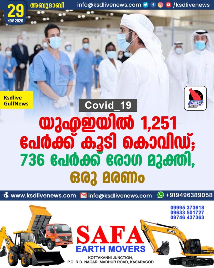 യുഎഇയില് 1,251 പേര്ക്ക് കൂടി കൊവിഡ് ; 736 പേർക്ക് രോഗ മുക്തി, ഒരു മരണം
