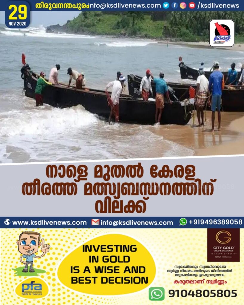 നാളെ മുതൽ കേരള തീരത്ത് മത്സ്യബന്ധനത്തിന് വിലക്ക്