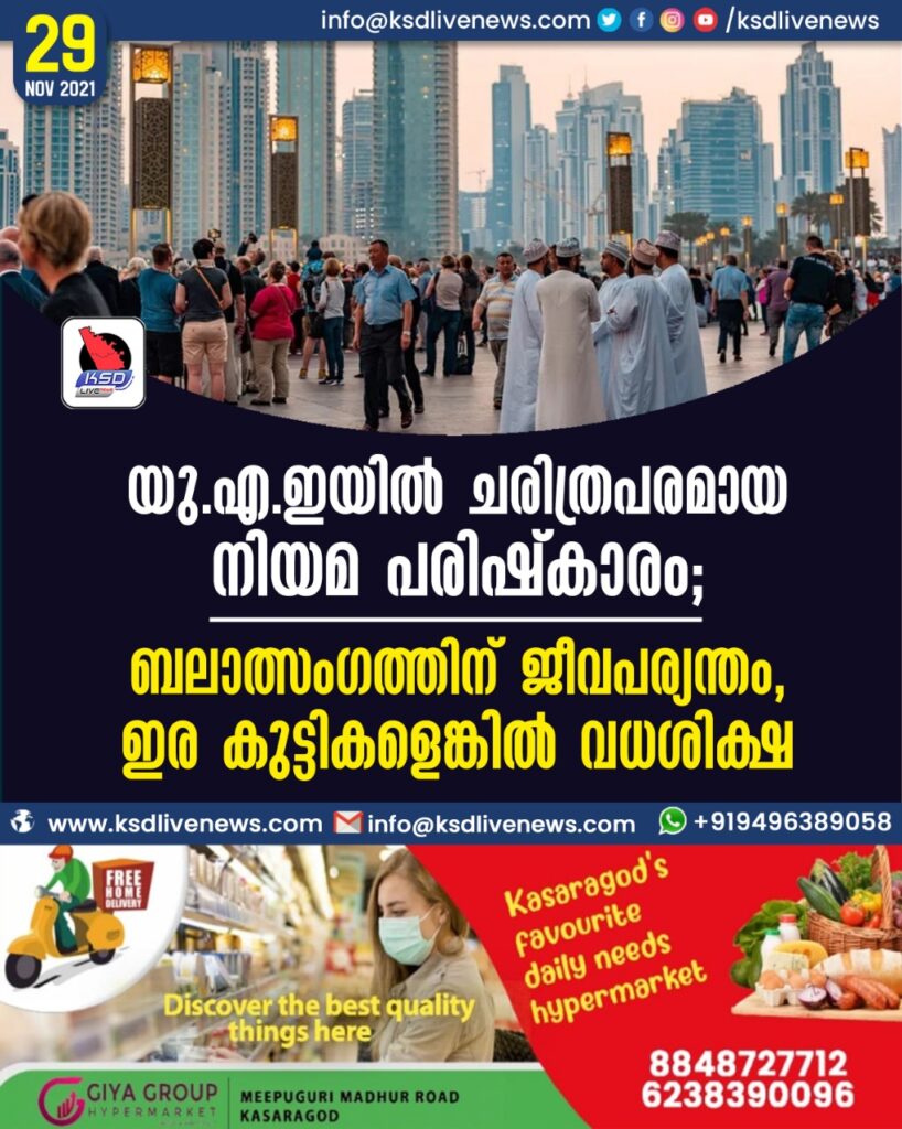 യു.എ.ഇയില് ചരിത്രപരമായ നിയമ പരിഷ്കാരം; ബലാത്സംഗത്തിന് ജീവപര്യന്തം, ഇര കുട്ടികളെങ്കില് വധശിക്ഷ