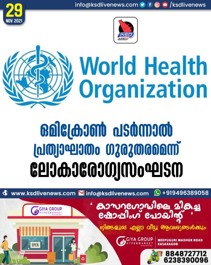 ഒമിക്രോണ്‍ പടര്‍ന്നാല്‍ പ്രത്യാഘാതം ഗുരുതരമെന്ന് ലോകാരോഗ്യസംഘടന