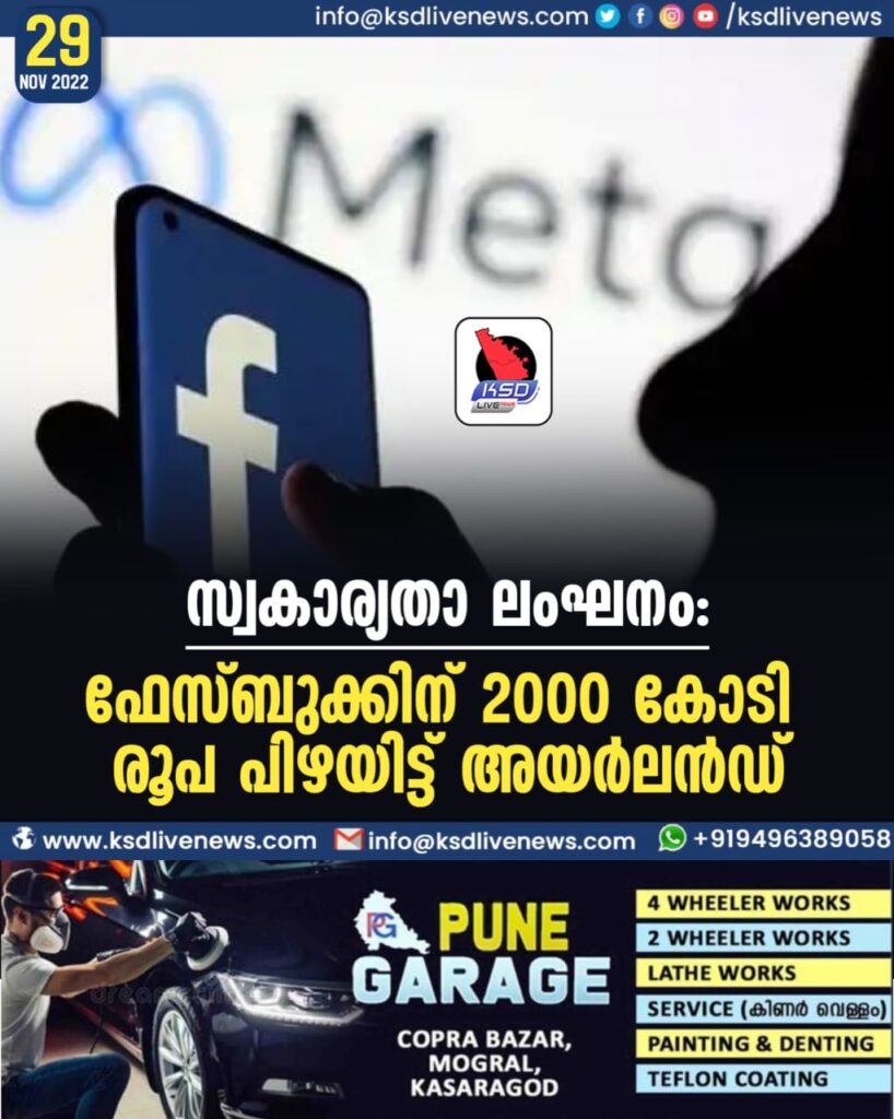കഴിഞ്ഞ വര്ഷം നടത്തിയ അന്വേഷണത്തിന്റെ പശ്ചാത്തലത്തിലാണ് നടപടി. ഇതോടു കൂടി നിലവില് 1 ബില്യണ് യൂറോ അയര്ലന്ഡ് ഫേസ്ബുക്കിന് പിഴയിട്ടിട്ടുണ്ട്.