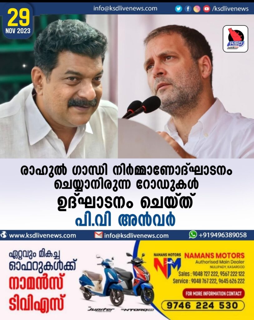 രാഹുല്‍ ഗാന്ധി നിര്‍മ്മാണോദ്ഘാടനം ചെയ്യാനിരുന്ന റോഡുകള്‍ ഉദ്ഘാടനം ചെയ്ത് പി വി അന്‍വര്‍