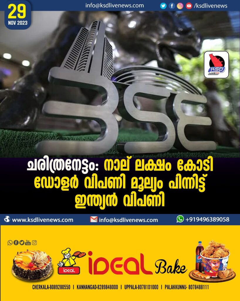 ചരിത്രനേട്ടം: നാല് ലക്ഷം കോടി ഡോളര് വിപണി മൂല്യം പിന്നിട്ട് ഇന്ത്യന് വിപണി,