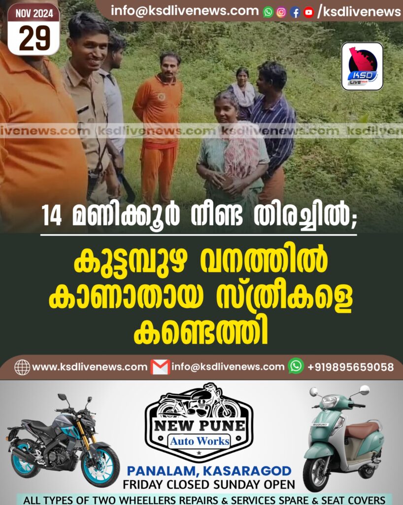 14 മണിക്കൂര്‍ നീണ്ട തിരച്ചില്‍; കുട്ടമ്പുഴ വനത്തില്‍ കാണാതായ സ്ത്രീകളെ കണ്ടെത്തി
