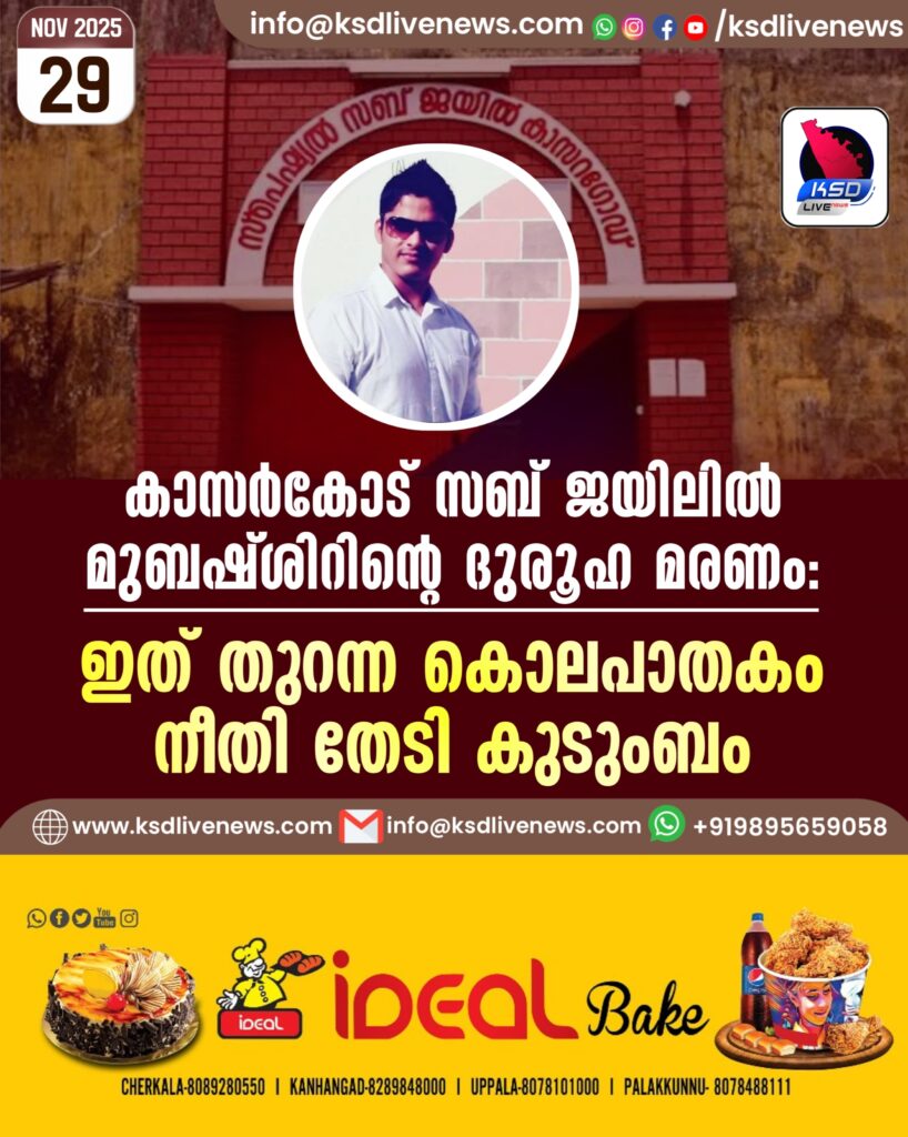കാസർകോട് സബ് ജയിലിൽ മുബഷ്ശിറിന്റെ ദുരൂഹ മരണം: “ഇത് തുറന്ന കൊലപാതകം” നീതി തേടി കുടുംബം