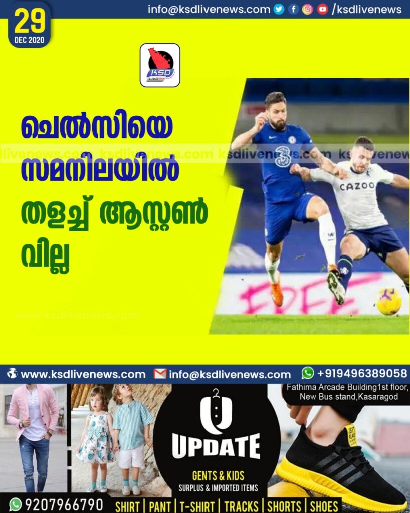 ഇംഗ്ലീഷ് പ്രീമിയർ ലീഗിൽ ചെൽസിയെ സമനിലയിൽ തളച്ചു ആസ്റ്റൺ വില്ല. ഇരു ടീമുകളും ഓരോ ഗോൾ വീതം നേടി സമനിലയിൽ പിരിയുകയായിരുന്നു